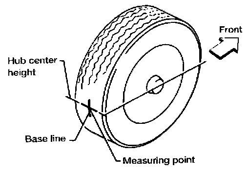 3. Put a mark on base line of tread (rear side) of both tires at the same height as hub center. These are measuring points.