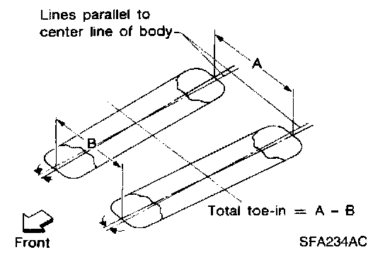 FRONT WHEEL ALIGNMENTBefore checking front wheel alignment, be sure to make a preliminary inspection (Unladen*).
