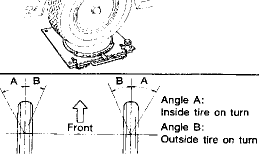 2. Rotate steering wheel all the way right and left; measure turning angle.