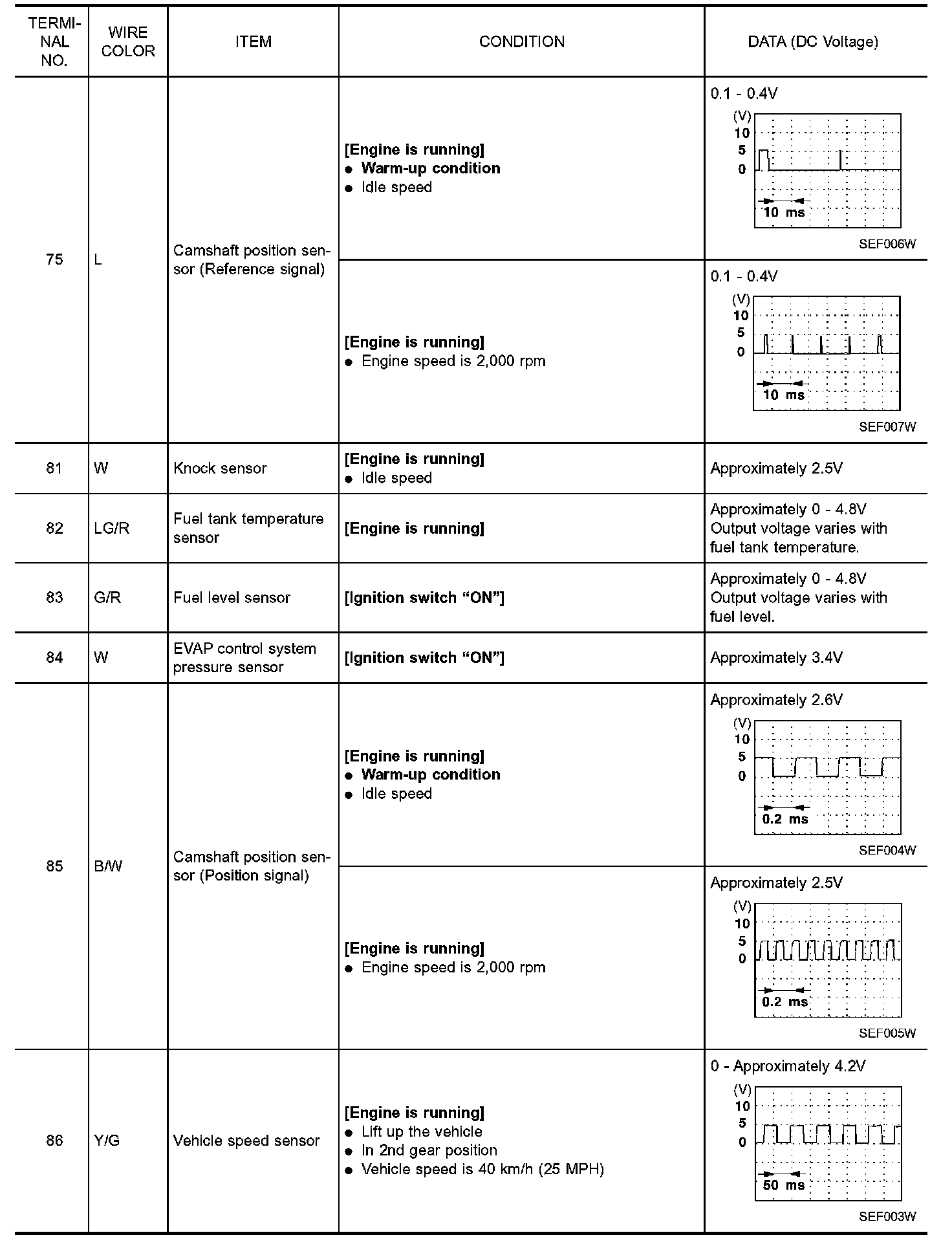 CAUTION: Do not use ECM ground terminals when measuring input/ output voltage. Doing so may result in damage to the ECM's transistor. Use a ground other than ECM terminals, such as the ground.