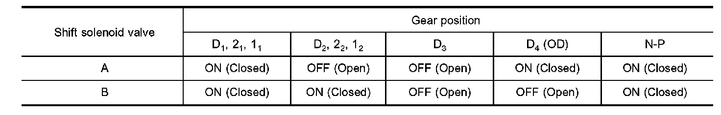 Relation Between Shift Solenoid Valves A and B and Gear Positions