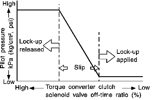 The torque converter clutch piston is designed to slip to adjust the ratio of ON-OFF, thereby reducing lock-up shock.