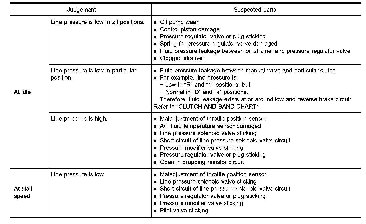 - When measuring line pressure at stall speed, follow the stall test procedure.