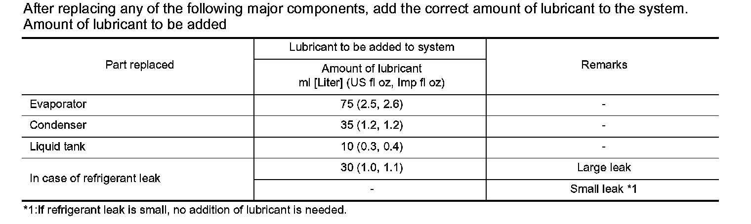 Lubricant Adjusting Procedure For Components Replacement Except Compressor: