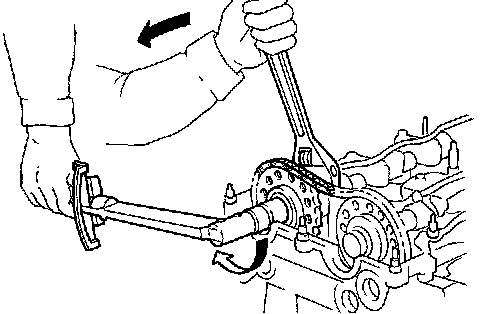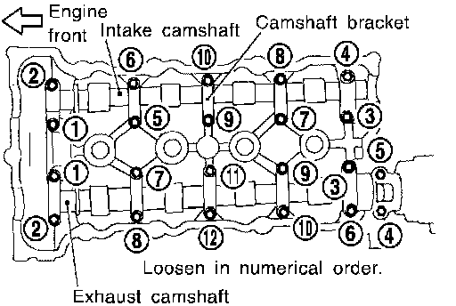 Lock camshafts as shown in figure and tighten to specified torque.