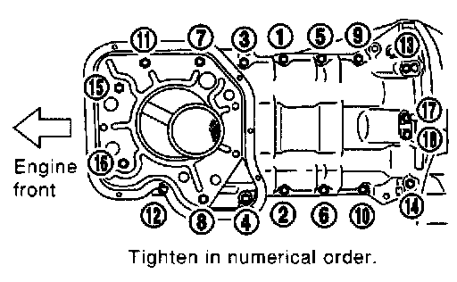 Bolts 1 - 16:.............................16 - 19 Nm (1.6 - 1.9 kg-m, 12 - 14 ft. lbs.)