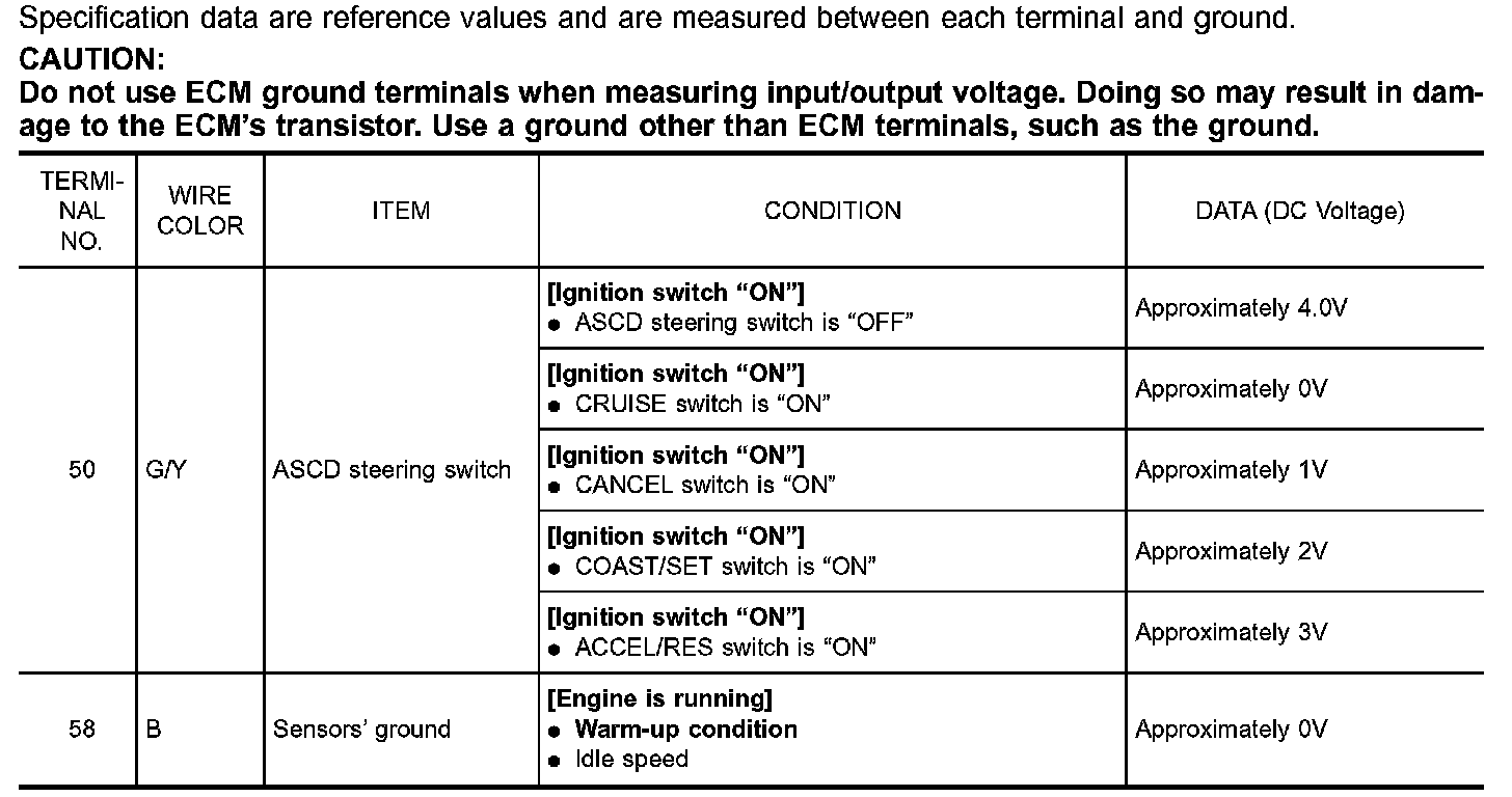 ECM Terminals And Reference Values: