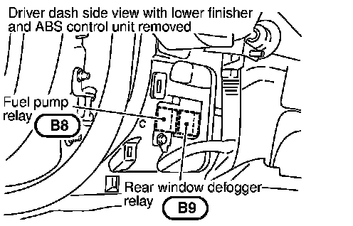 Fuel Pump Relay, Rear Window Defogger Relay: