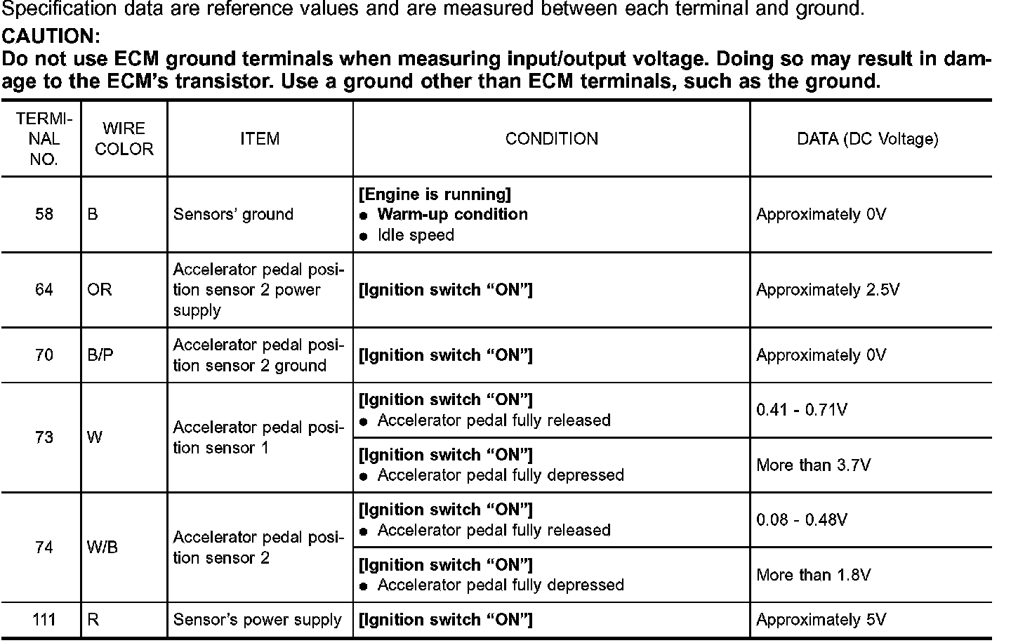 ECM Terminals And Reference Values: