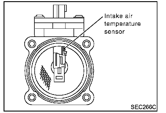 The mass air flow sensor is placed in the stream of intake air. It measures the intake flow rate by measuring a part of the entire intake flow. It consists of a hot film that is supplied with electric current from the ECM. The temperature of the hot film is controlled by the ECM a certain amount. The heat generated by the hot film is reduced as the intake air flows around it. The more air, the greater the heat loss.