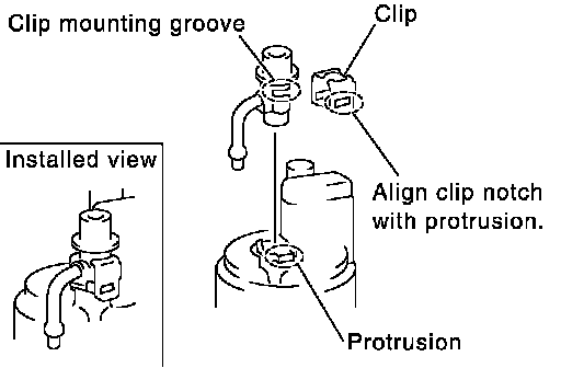 2. With the clip installed, insert the regulator straight by matching the fuel filter protrusion and the clip notch.