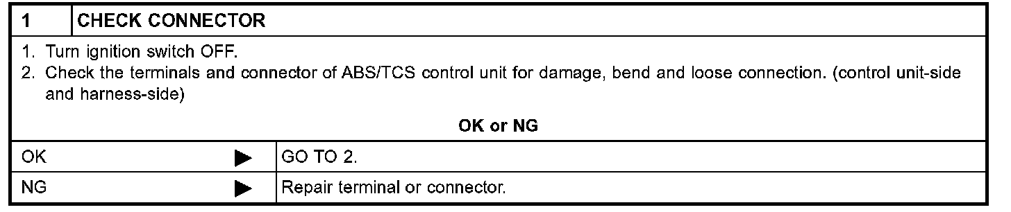 Step 1// ABS/TCS Control Unit Circuit Check / For TCS Models: