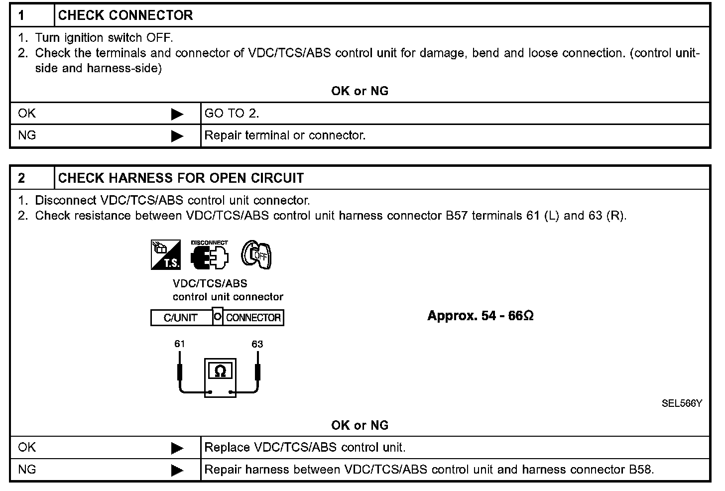 Step 1 - 2 / VDC/TCS/ABS Control Unit Circuit Check / For VDC Models: