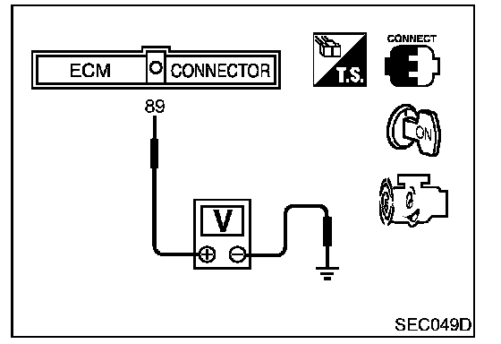 3. Check voltage between ECM terminal 89 and ground under the above conditions.