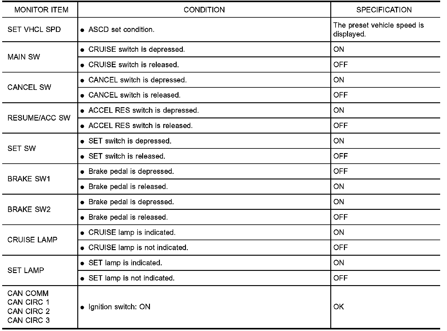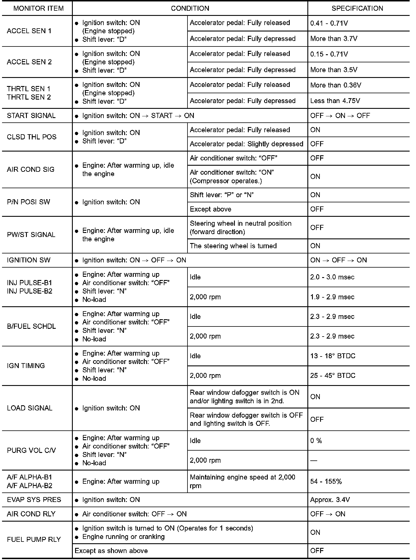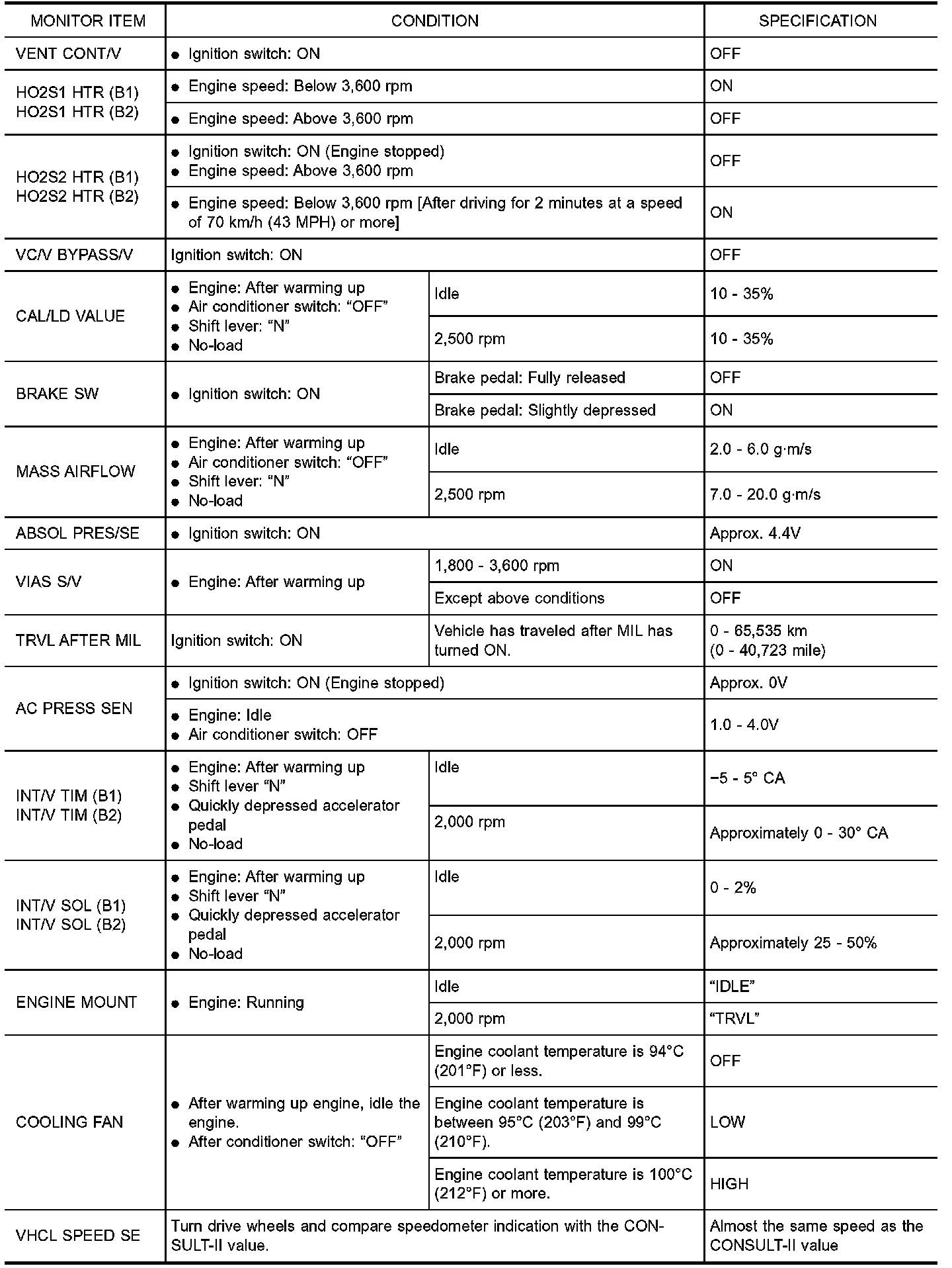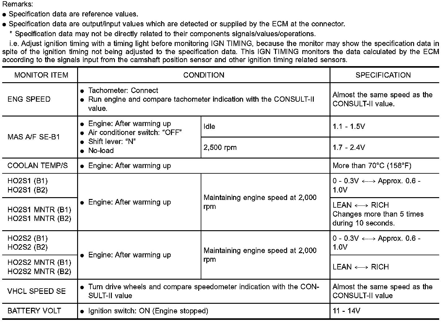 CONSULT-II Reference Value in Data Monitor Mode