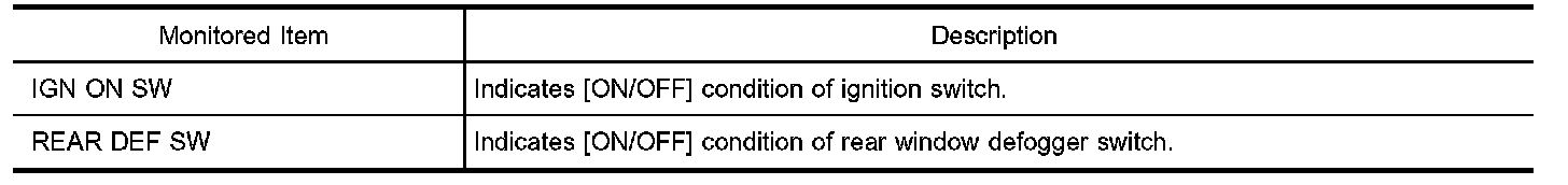 Rear Defogger - Data Monitor: