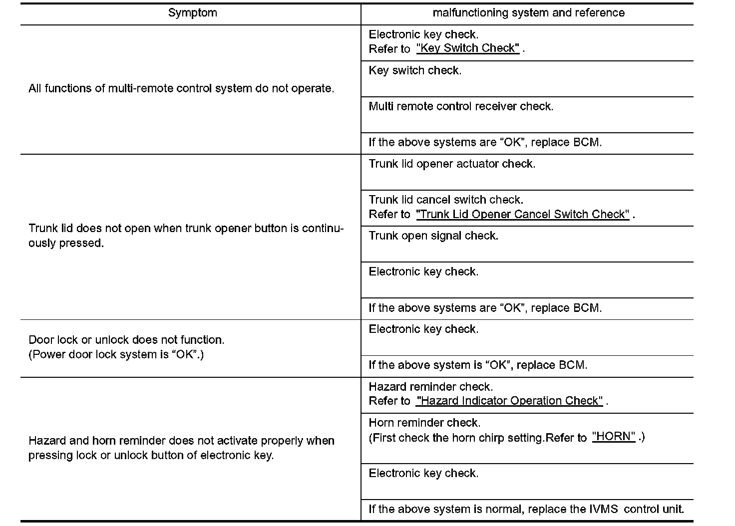 Trouble Diagnosis Chart by Symptom