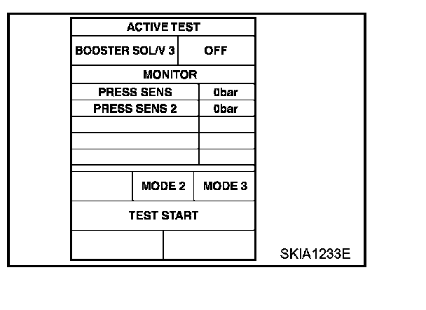 Touch any of "MODE 1", "MODE 2", "MODE 3" to check that the operation condition is caused by operating monitor and brake pedal.
