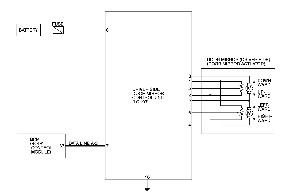 Driver's Side Door Mirror Control Unit (With Door Mirror Memory System) Schematic LCU04: