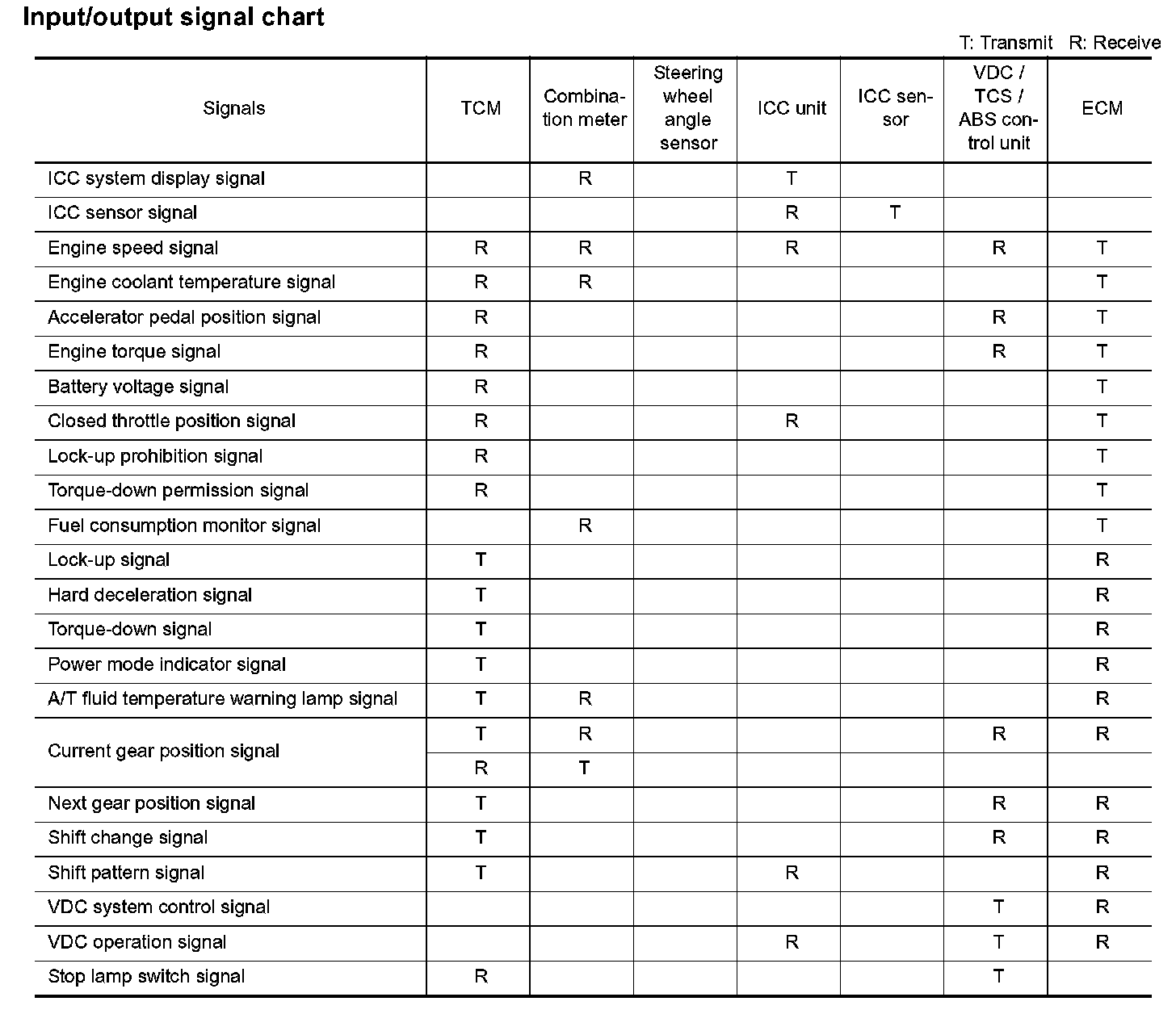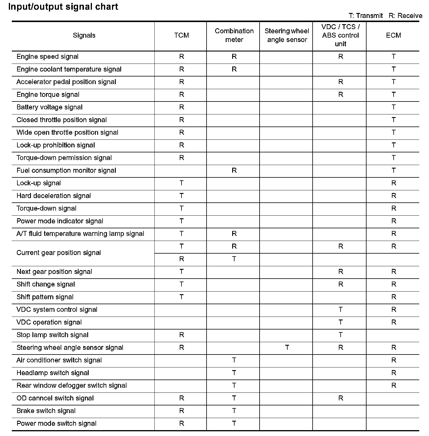 Input/Output Signal Chart Part 1: