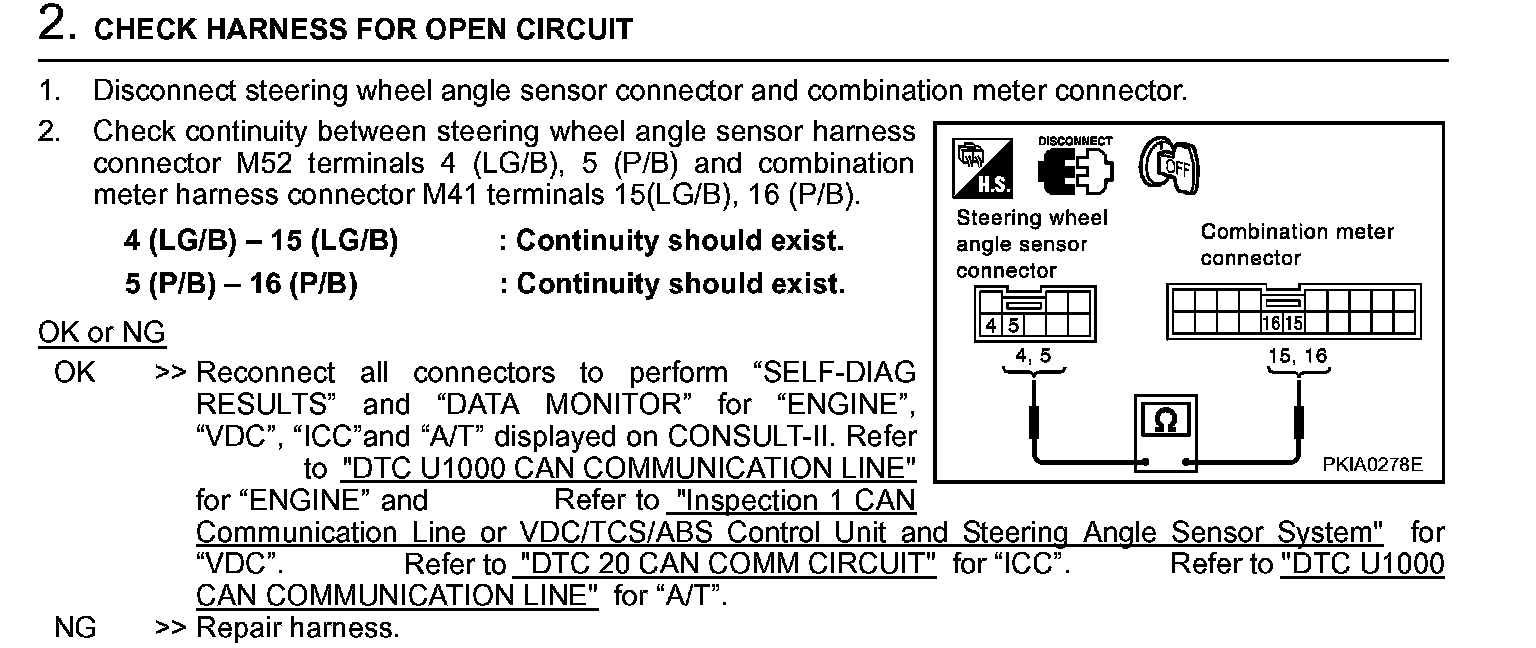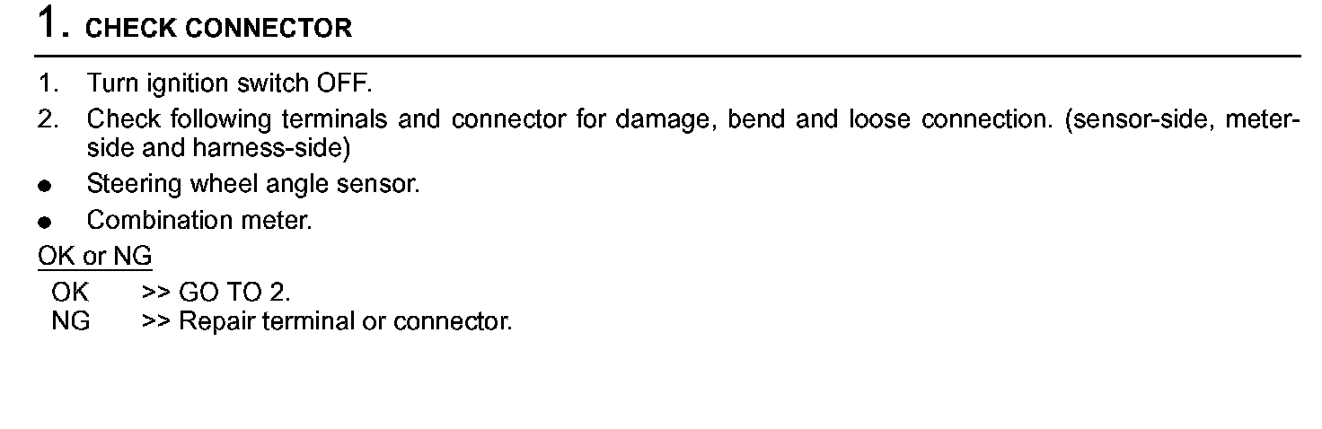 Circuit Check Steering Wheel Angle Sensor and Combination Meter