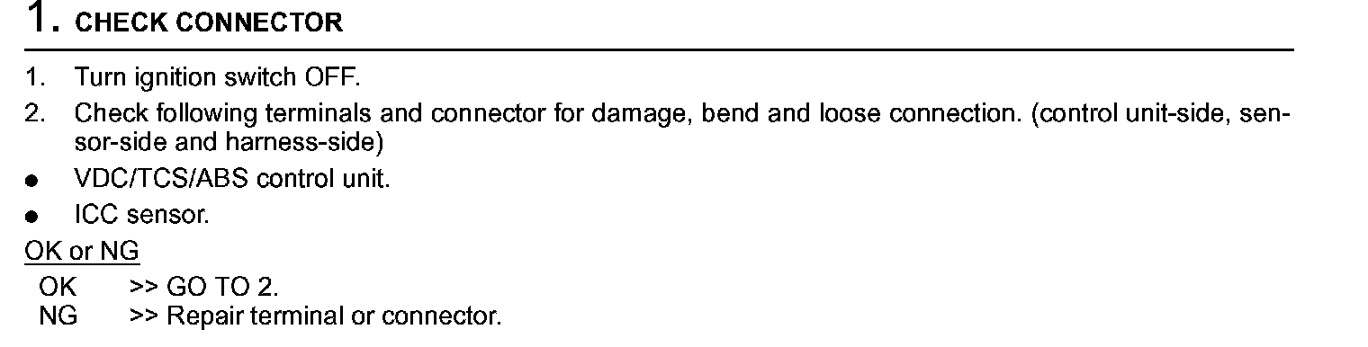 Circuit Check VDC/TCS/ABS Control Unit And ICC Sensor Step 1: