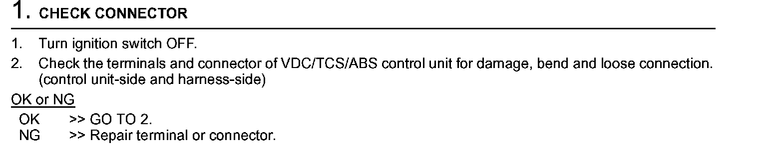VDC/TCS/ABS Control Unit Circuit Check Step 1: