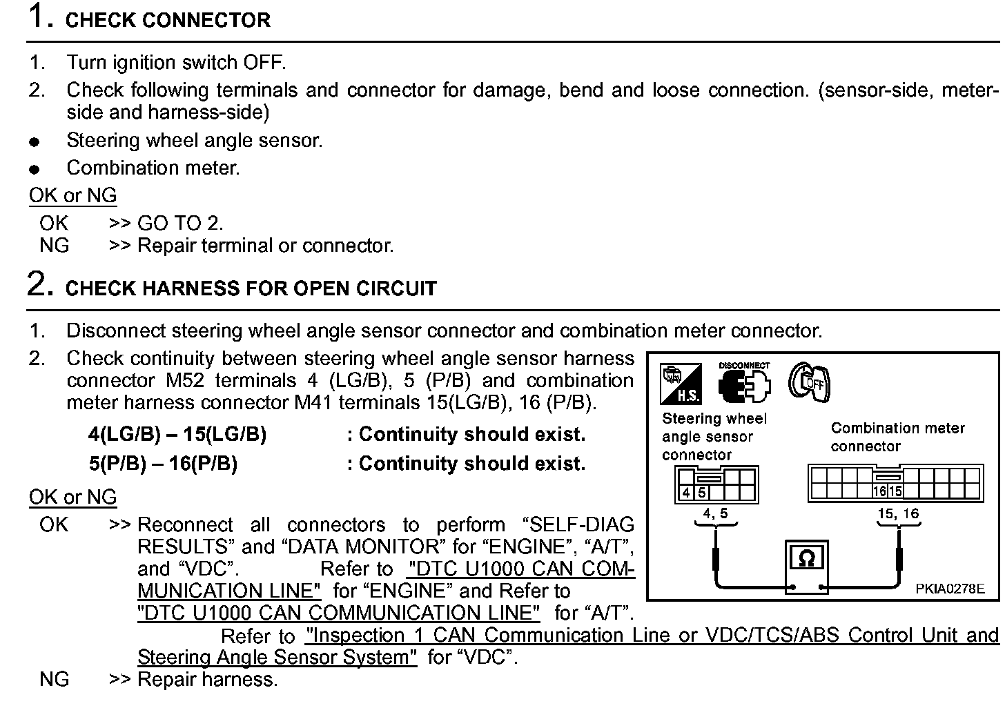 Circuit Check Between Steering Wheel Angle Sensor And Combination Meter Step 1 - 2: