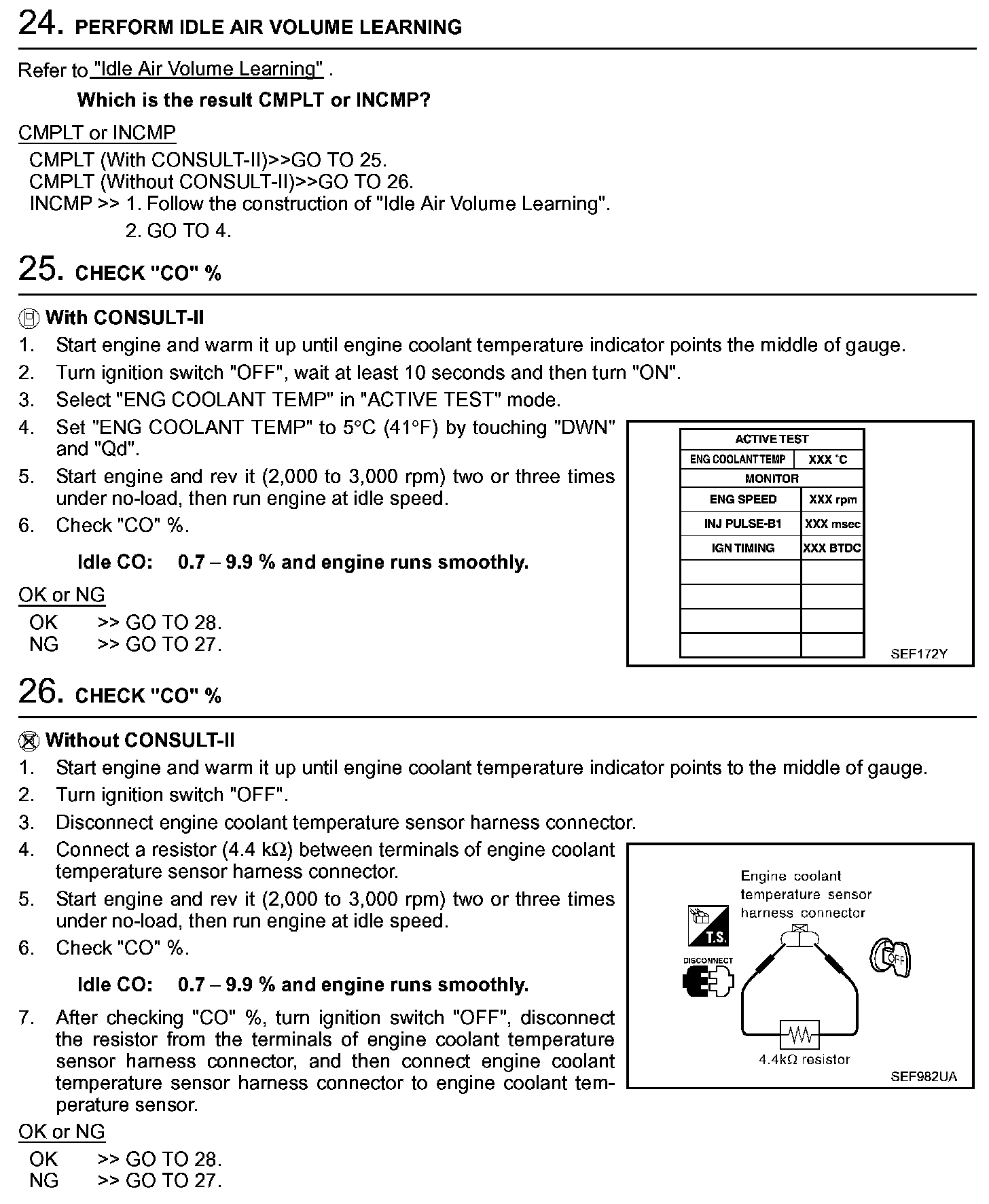 3. On automatic transmission equipped models, when checking idle rpm, ignition timing and mixture ratio, checks should be carried out while shift lever is in "N" position.