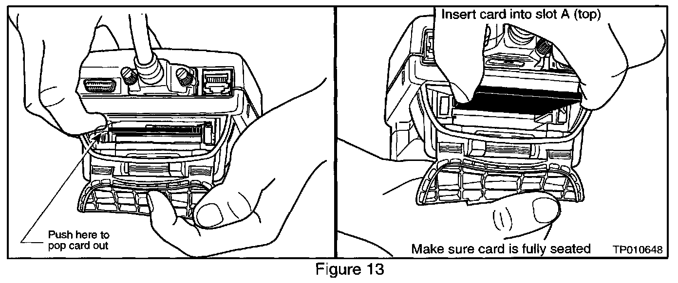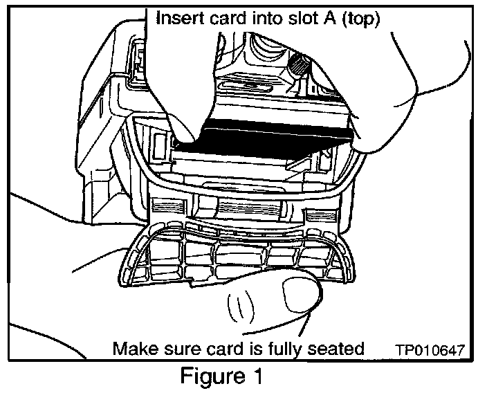 14. Remove the ECU Reprogramming card from slot A of CONSULT-II and install the Diagnostics (red/white) card into slot A (see Figure 13).