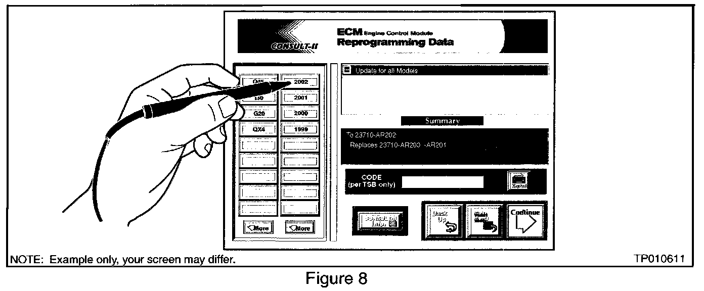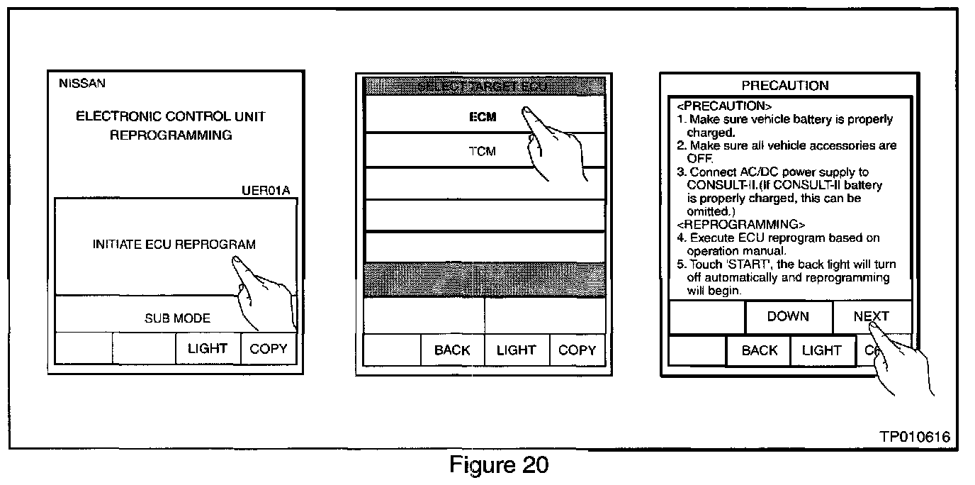 ^ Charge the CONSULT-II battery before proceeding with ECM Reprogramming