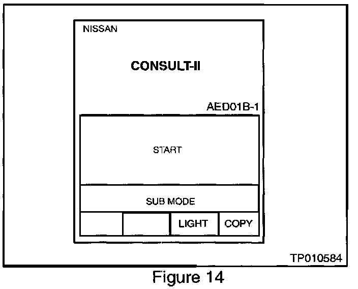 15. Turn "0N" the ignition switch (do not start the engine). CONSULT-II will turn on automatically (see Figure 14).