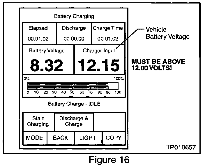 A. If the vehicle's battery charge ("Charger Input") is less than 12.0 volts: