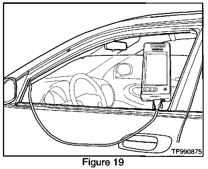 29. Roll down the driver's window part way, exit the vehicle, close the door and hang the CONSULT-II unit on the outside of the window (see Figure 19).