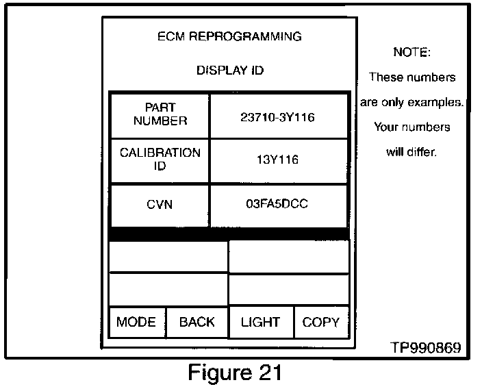 31. Press "CHECK ECM P/N" to confirm (i.e., take note of) the ECM part number on the vehicle to be reprogrammed (see Figure 21).