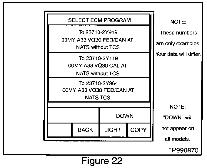 34. Select the correct ECM program to install from the choices on the CONSULT-II screen (see Figure 22).