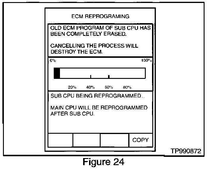 36. Press "START". After a moment the window shown in Figure 24 will appear. CONSULT-II will now turn off its screen backlight and reprogram the ECM.