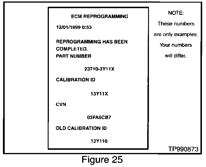 37. Once ECM Reprogramming is done, CONSULT II will print out a report (see Figure 25). Attach this to the repair order for future reference.