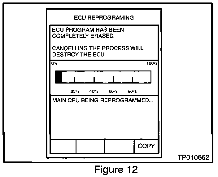 42. Press "START". After a moment the window shown in Figure 12 will appear. CONSULT-II will now turn off its screen backlight and reprogram the TCM.