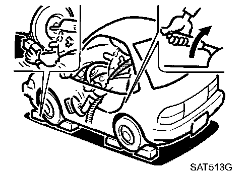 2. Drive the car for about 10 minutes to warm it up so that the A/T fluid reaches in range of 50 to 80°C (122 to 176°F), then inspect the amount of A/T fluid and replenish if necessary.
