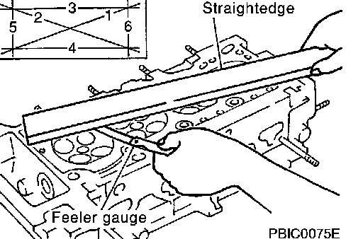 At each of several locations on bottom surface of cylinder head, measure distortion in six directions.
