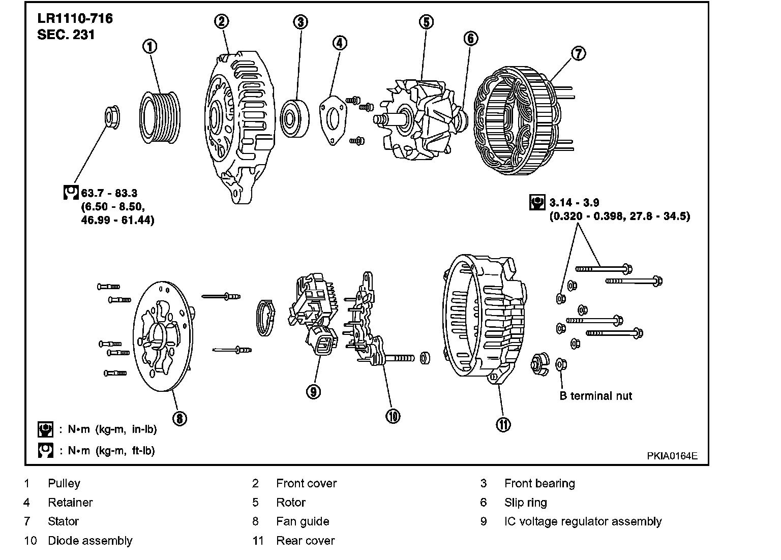 CAUTION: Be sure to tighten B terminal mounting nut carefully.