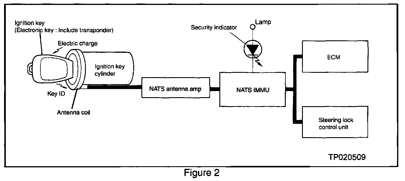 ^ The NATS will not allow the engine to start without the use of a registered electronic ignition key. If a vehicle will not start and the Security lamp is on solid, it may be because the ignition keys were not properly registered into the vehicle's NATS IMMU (Immobilizer control unit). In this case, there will be a "DIFFERENCE OF KEY" code stored in the NATS IMMU.