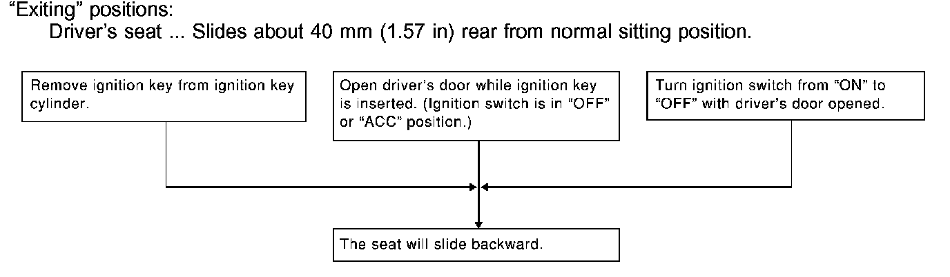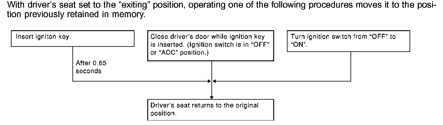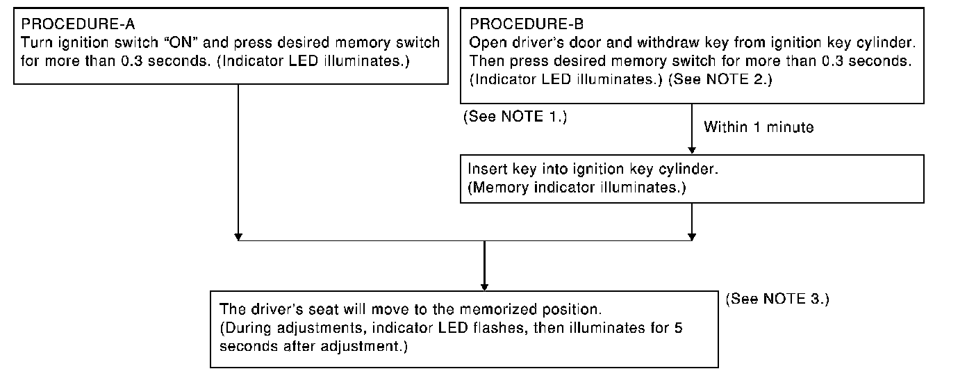 MEMORY AUTOMATIC SETTwo drive positions can be retained in the memory. Press memory switch to set driver's seat to preset position.