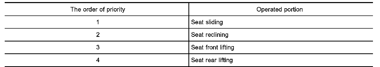 3. The driver's seat position (see the Table) operates in the order of priority.