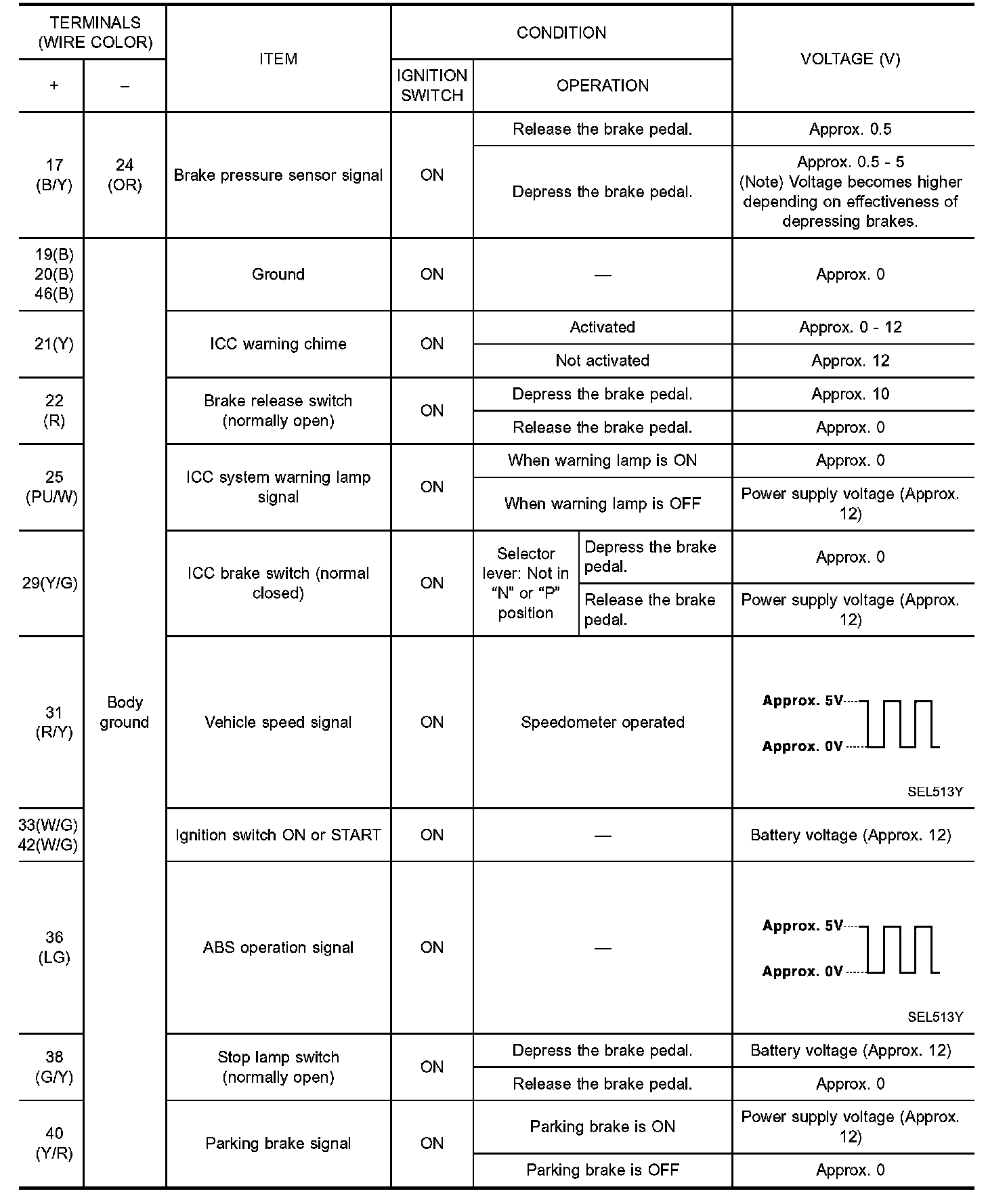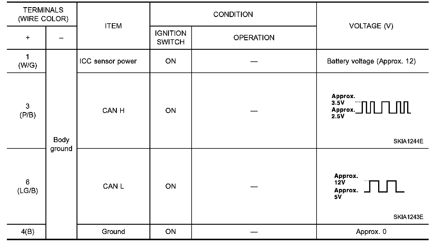 Terminals And Reference Value For ICC Warning Sensor: