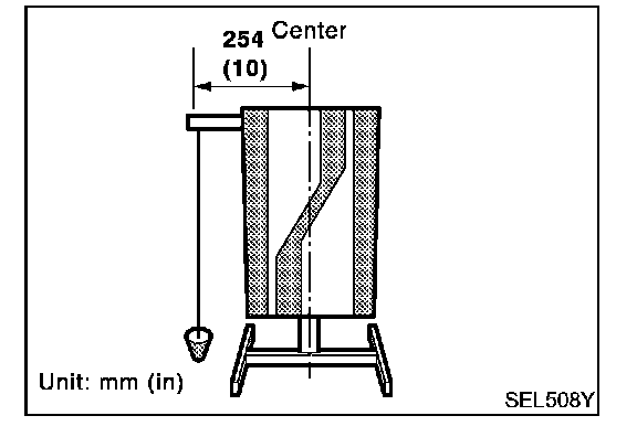 2. Suspend a thread with weight on the tip of the thread to 254 mm (10 in) left side of the target board from the center of the target board on top.