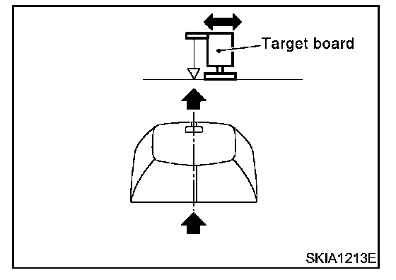 3. Adjust the position of the target board so that the extended line that links the center of the rear windshield and the center of the front windshield align with the weight suspended from the board.