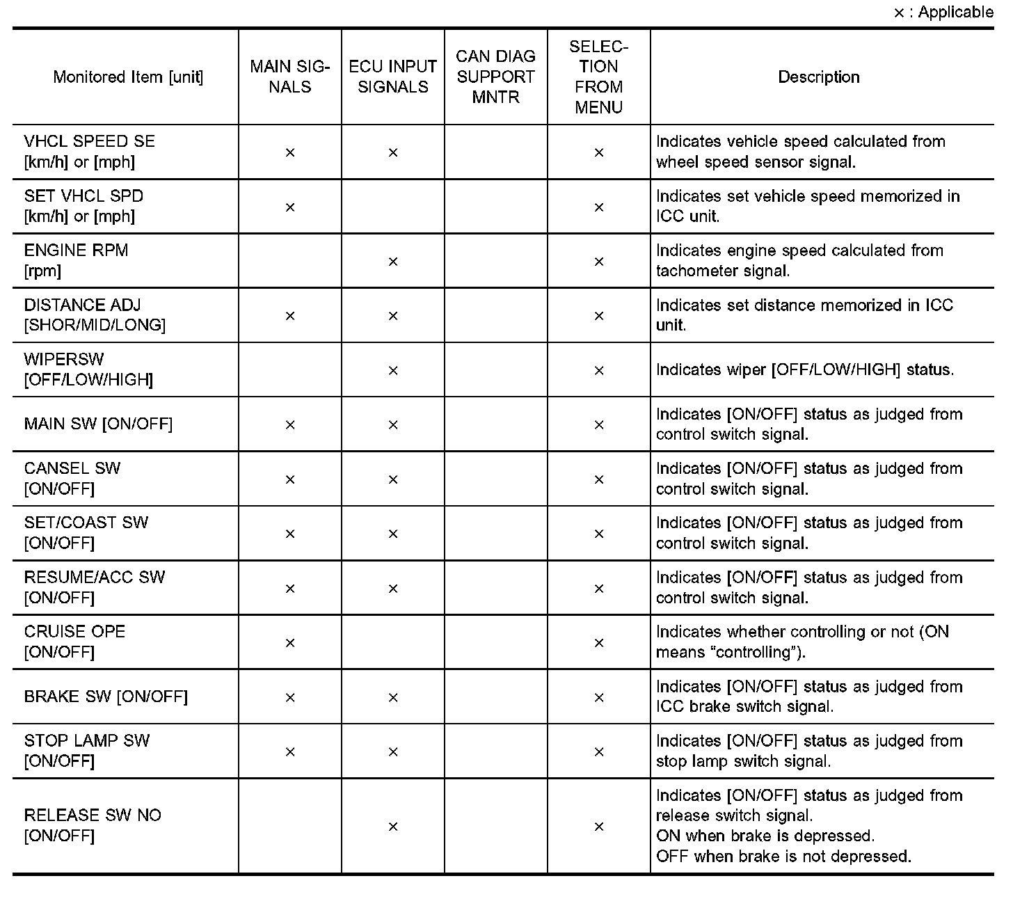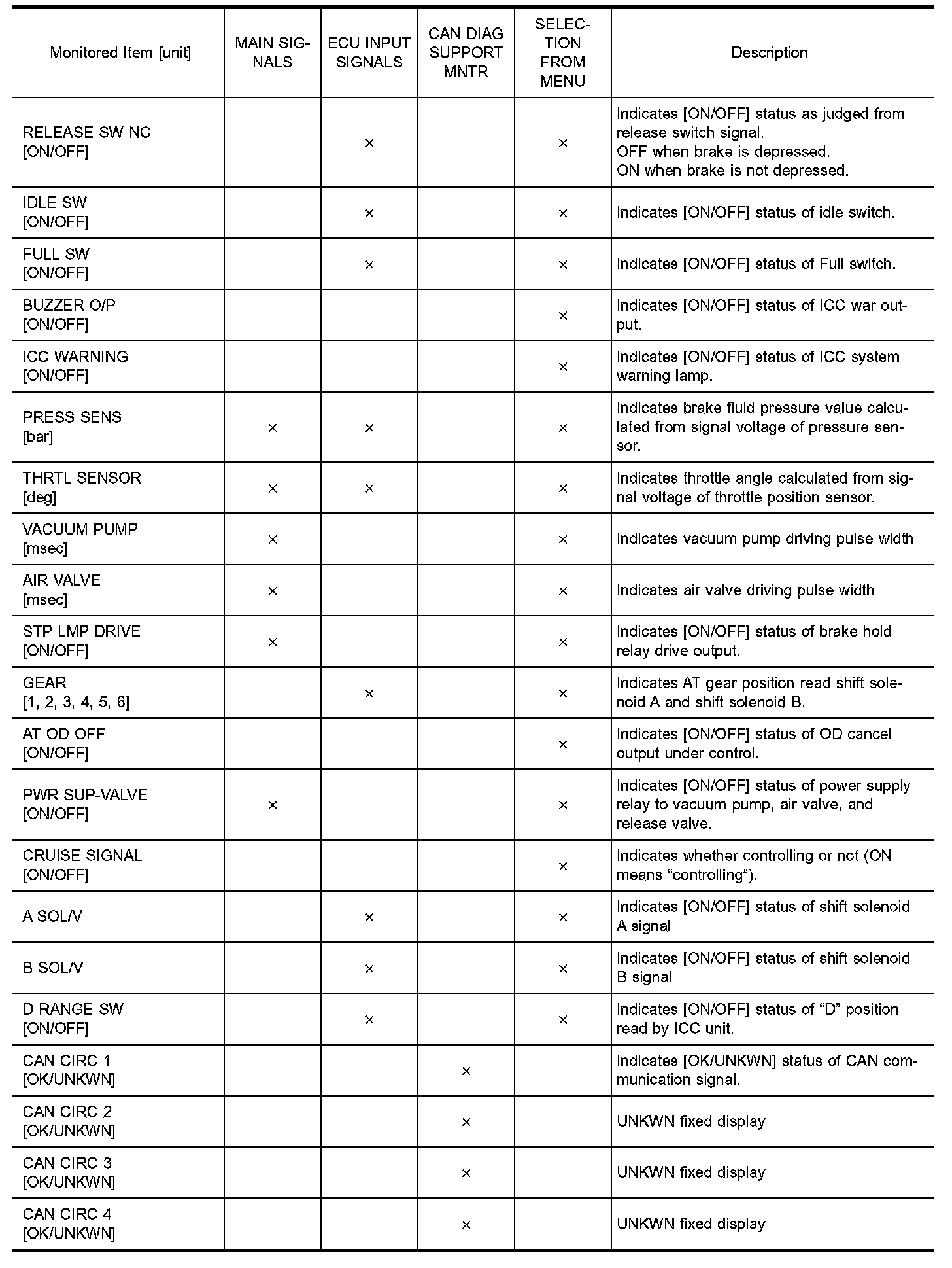 7. Touch any of "ECU INPUT SIGNALS", "MAIN SIGNALS", "CAN DIAG SUPPORT MNTR", and "SELECTION FROM MENU" on selection screen.