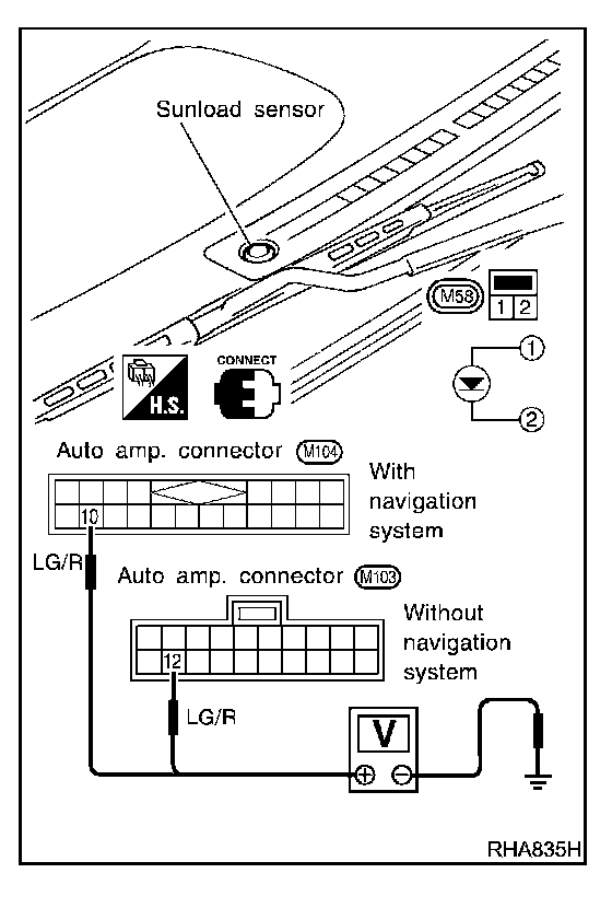 If NG, replace sunload sensor.